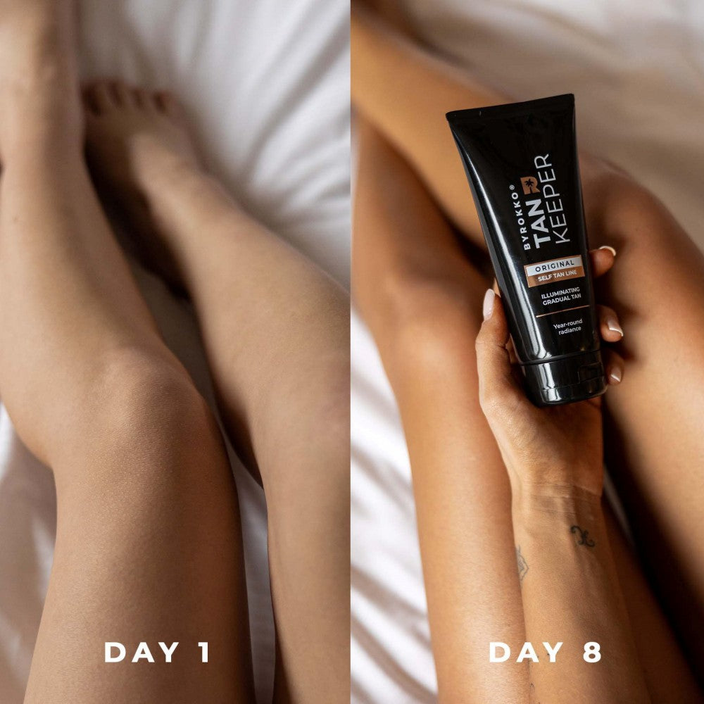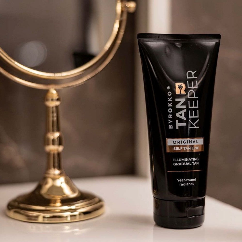 BYROKKO "Tan Keeper" - iškart nesuteiks odai labai tamsaus įdegio, tai laipsniško savaiminio įdegio priemonė, kuri idealiai tinka norintiems palaipsniui suteikti odai bronzinį įdegį ir reguliuoti norimą įdegio intensyvumą per keletą dienų.