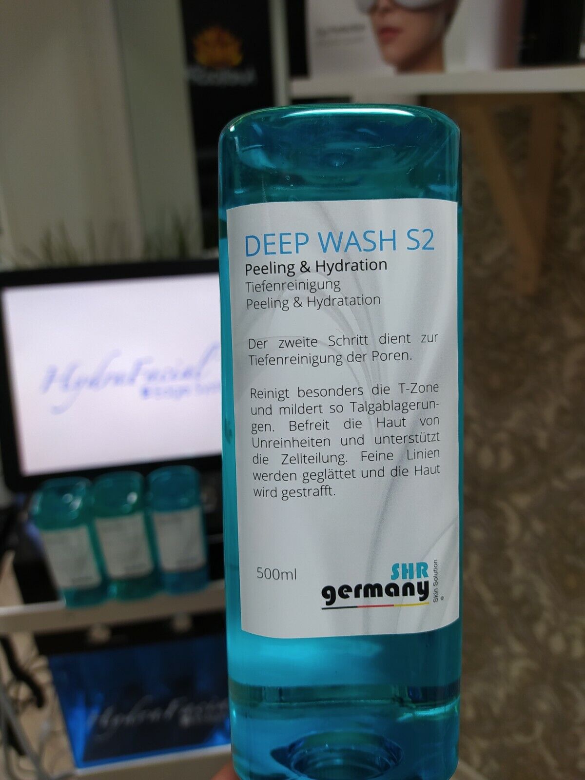 Kosmetikos išeiga: vienai HydraFacial veido valymo procedūrai sunaudojama apie 100 - 200 ml Hydrafacial tirpalo.