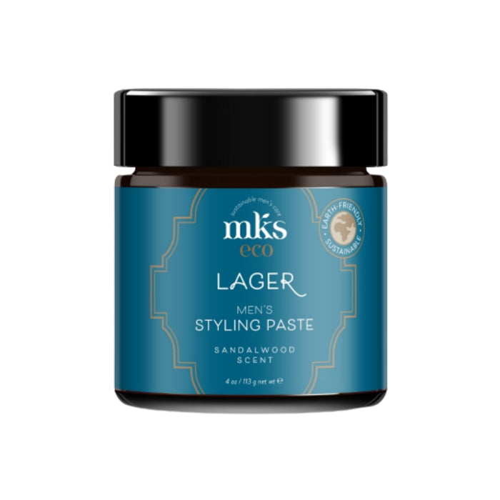 Universaliausia rinkoje vyriška plaukų formavimo pasta "MKS eco Lager" suteikia plaukams apibrėžtumo ir lankstumo, kad juos būtų galima išššukuoti, o vidutinė fiksacija laikytųsi visą dieną. ,,MKS eco Lager'' plaukų formavimo pasta praturtinta maitinamųjų aliejų mišiniu, įskaitant argano, kanapių sėklų ir ricinos aliejų bei taukmedžio sviestą, kuris suteikia plaukams reikiamos drėgmės, bet neapsunkina. Pantenolis ir baltymai stiprina plaukus, suteikia jiems tvirtumo ir tekstūros, bet nesulipina.